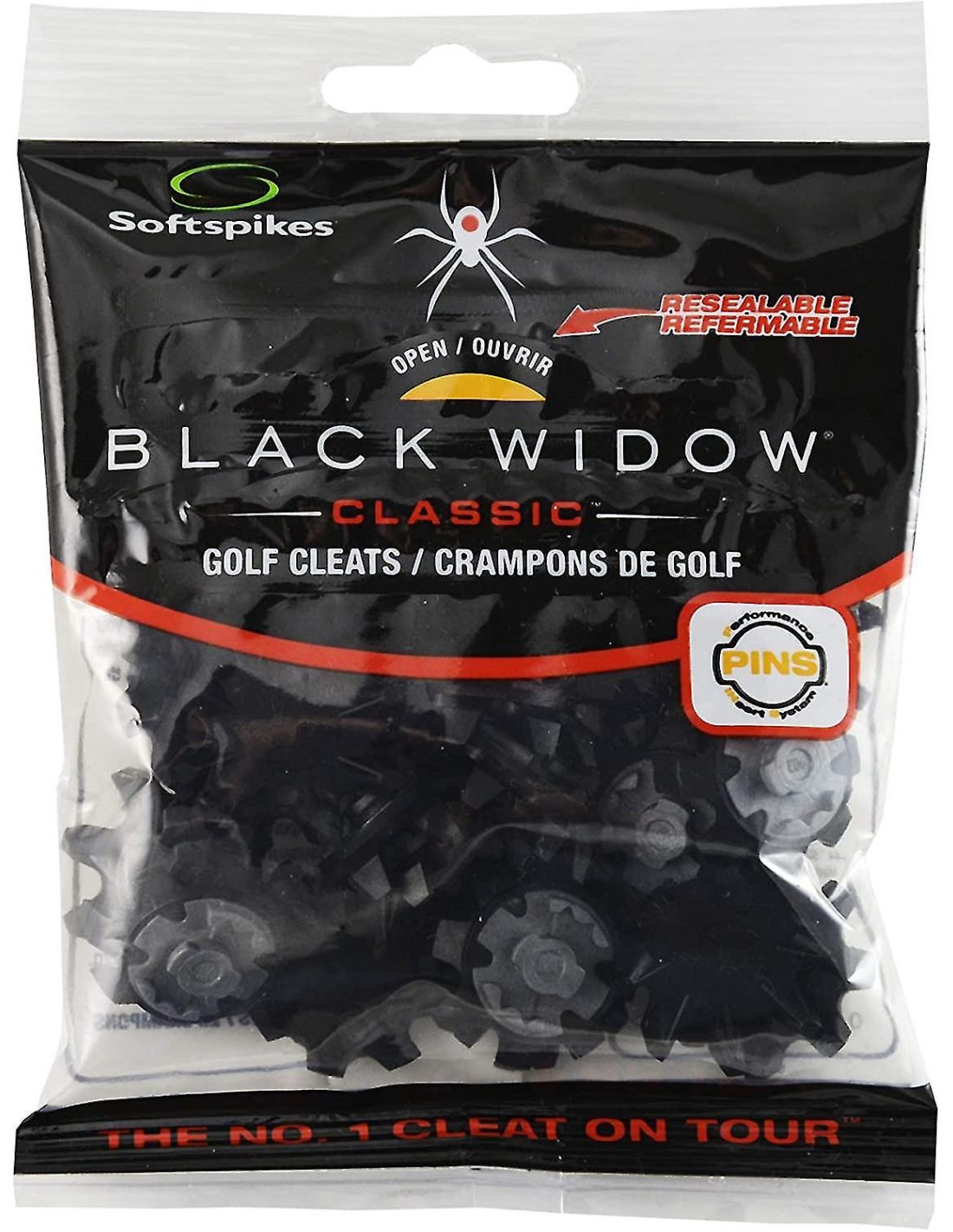 Los tacos de golf Black Widow cuentan con ocho patas flexibles para lo último en comodidad y tracción. Black Widow es el único taco que se ofrece en cuatro sistemas de inserción diferentes. Se adapta a zapatos de golf con sistemas de inserción PINS.