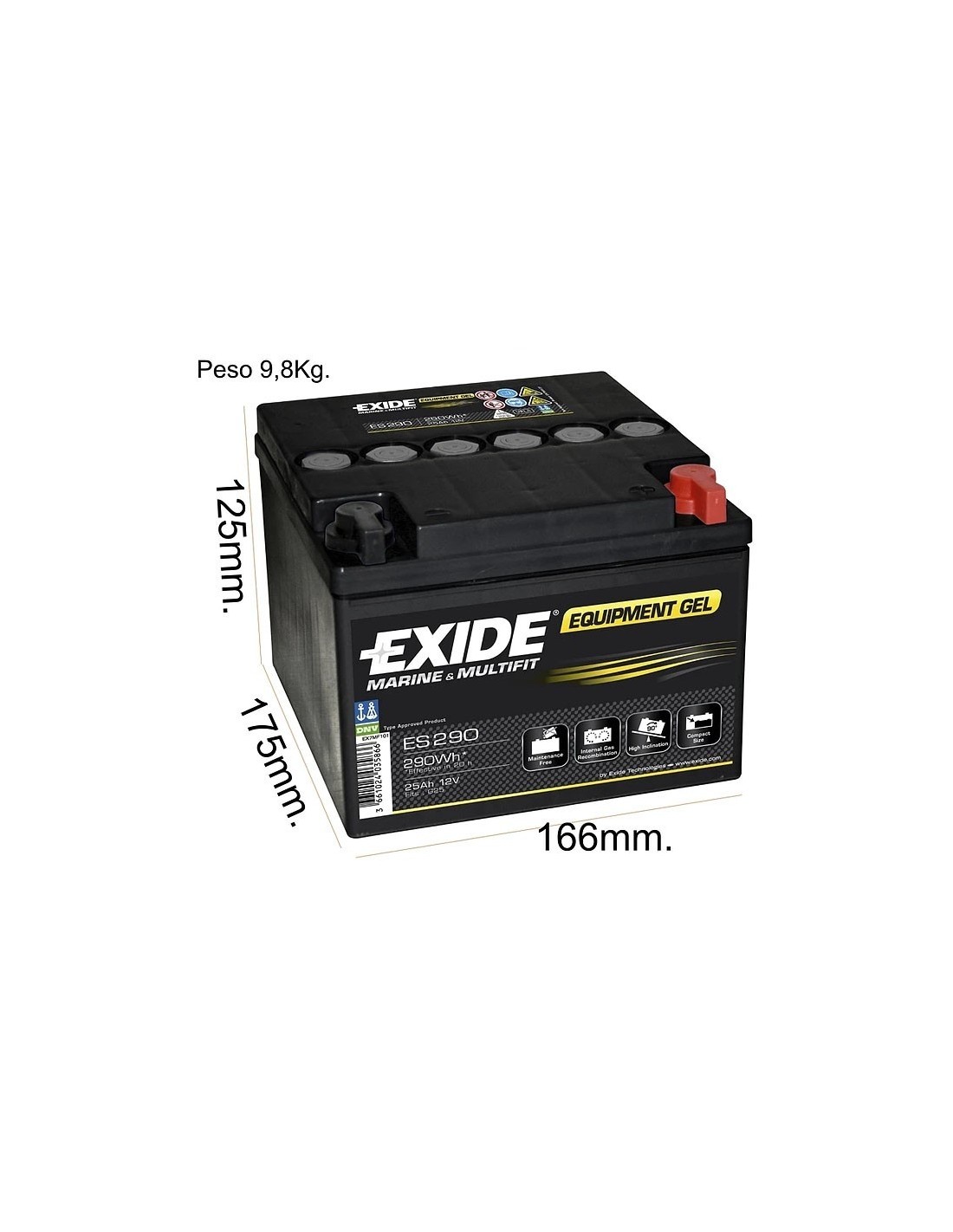 Batería Gel 12V. 25Ah. EXIDE ES290