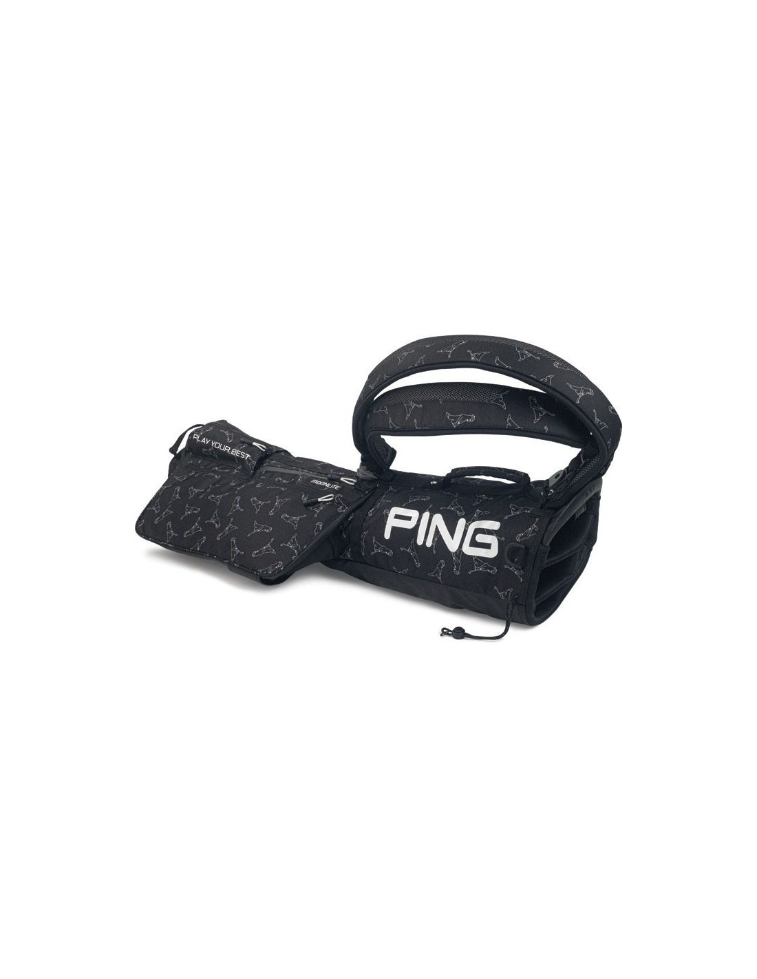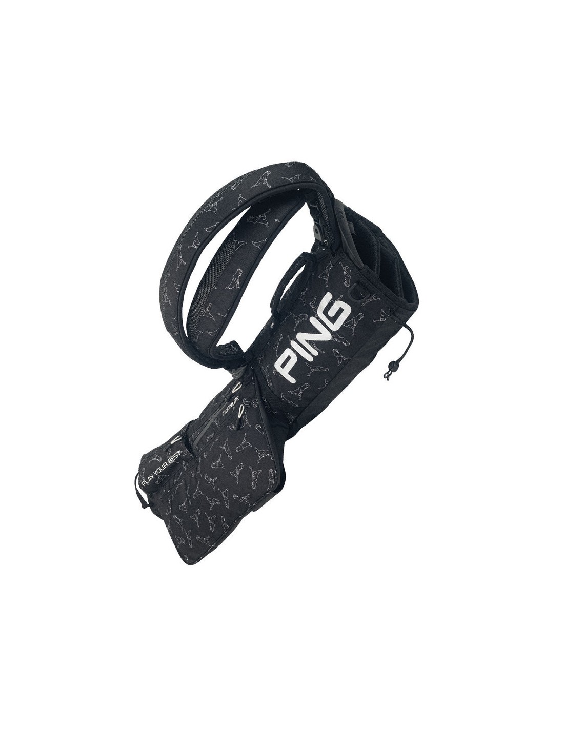 Bolsa Ping Moonlite Black / Mr. PING . La bolsa de palos de golf Moonlite es ligera pero lo suficientemente espaciosa para todo su juego de palos, y también resulta útil si simplemente debe realizar una corta caminata por el campo una tarde.