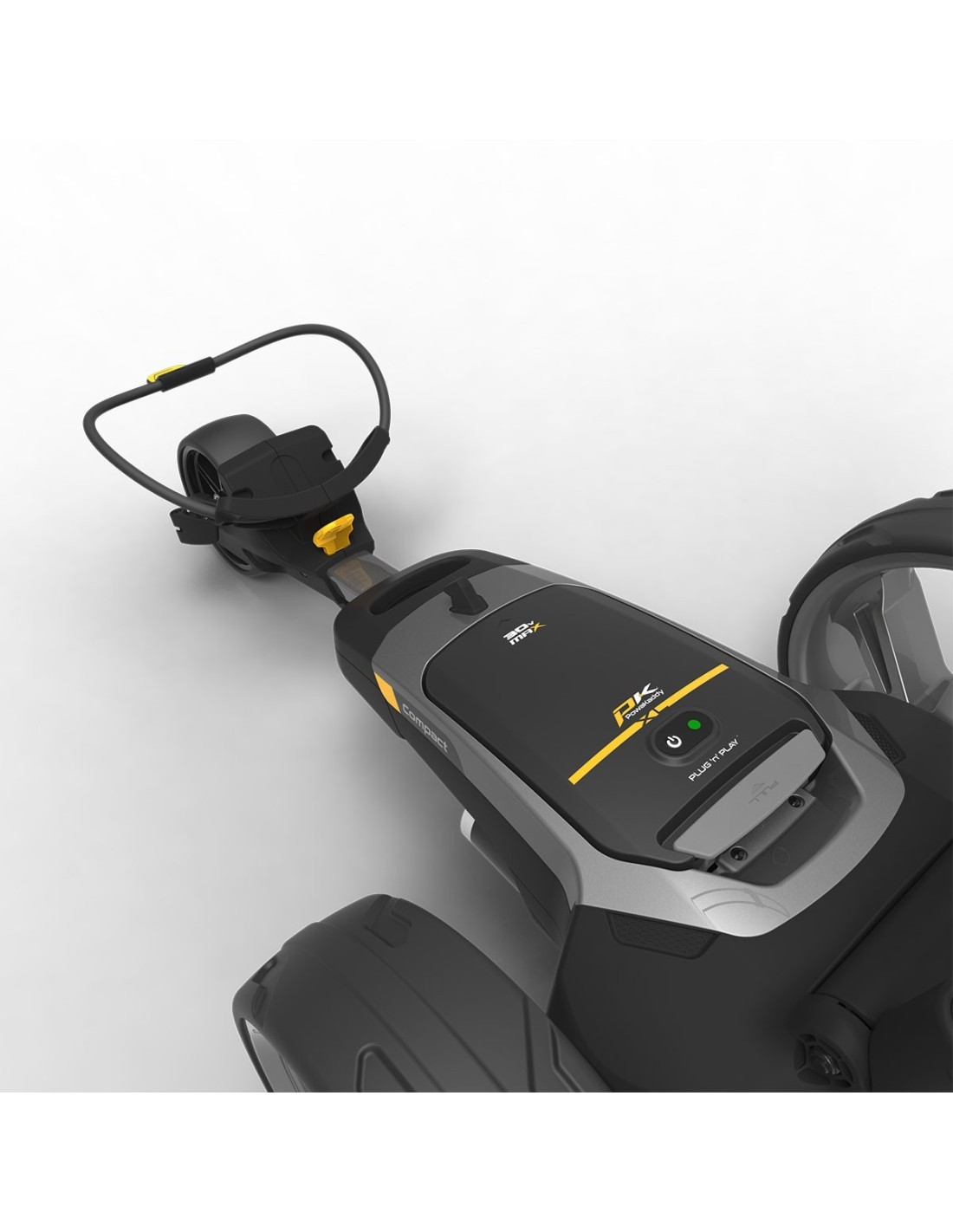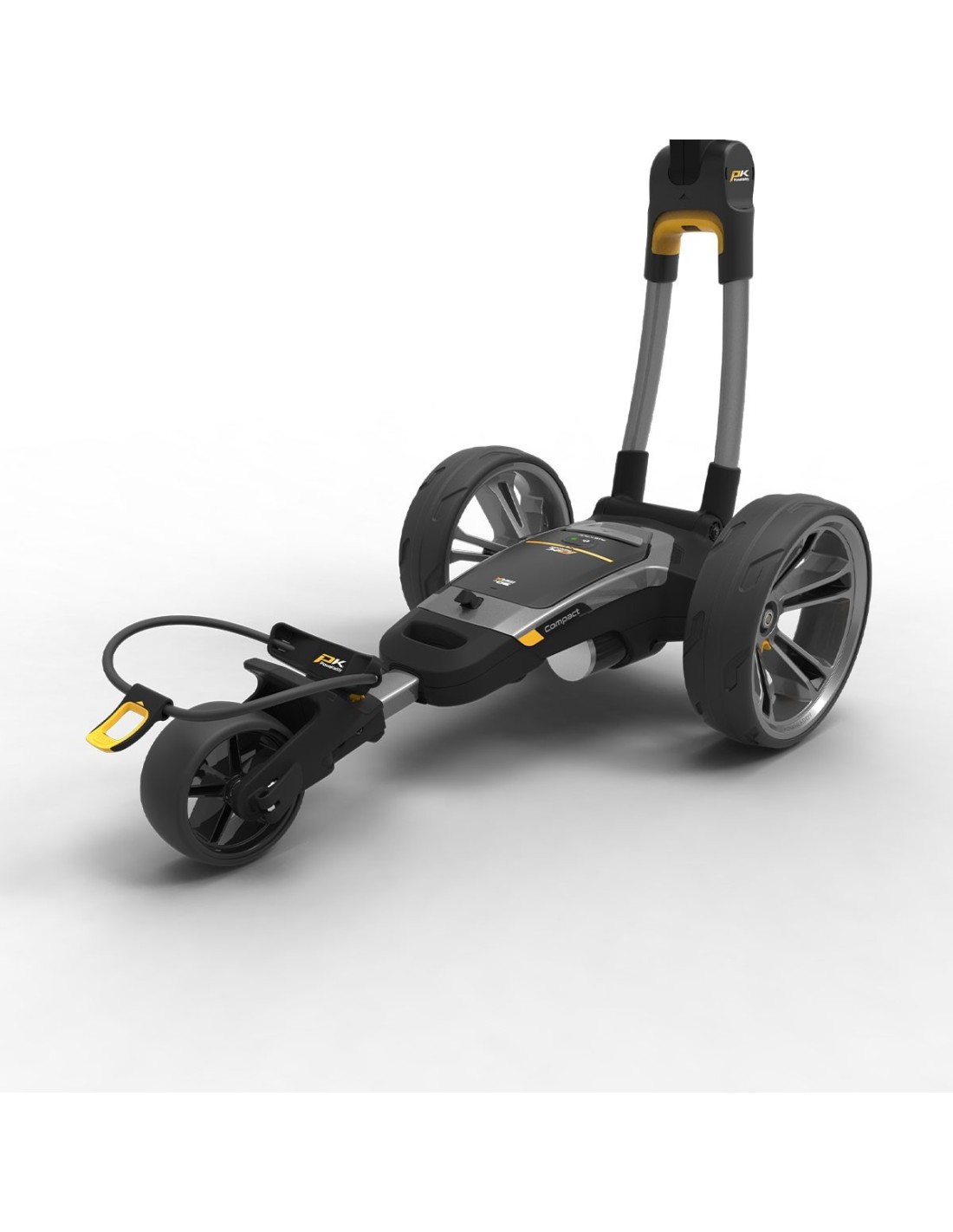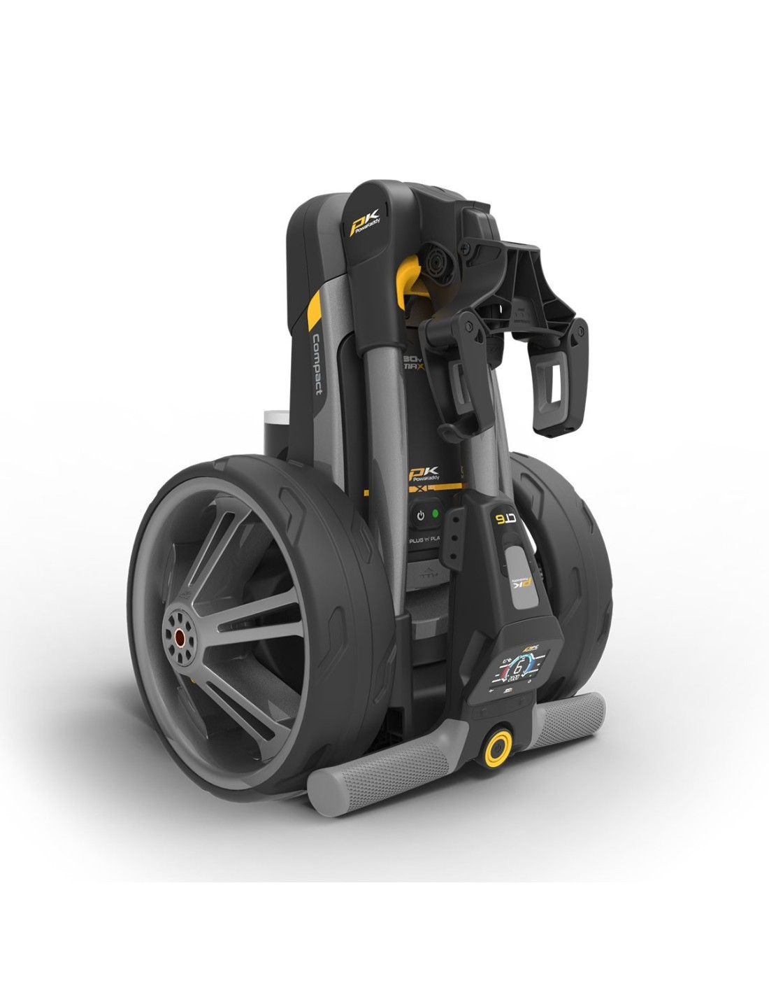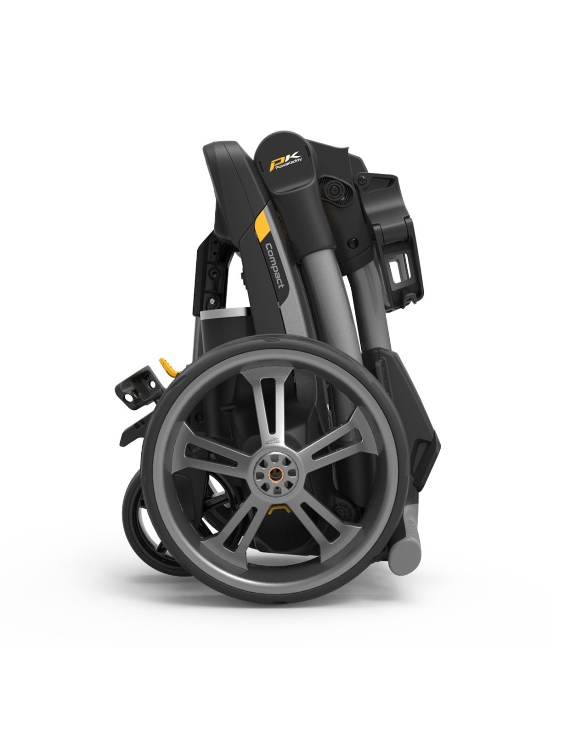 Un asa de transporte integrada facilita el transporte. El sistema Simple-2-Fold TM de la serie CT se pliega un 20% más pequeño que los modelos PowaKaddy Compact anteriores y un 35% más pequeño que su competidor más cercano en el mercado.