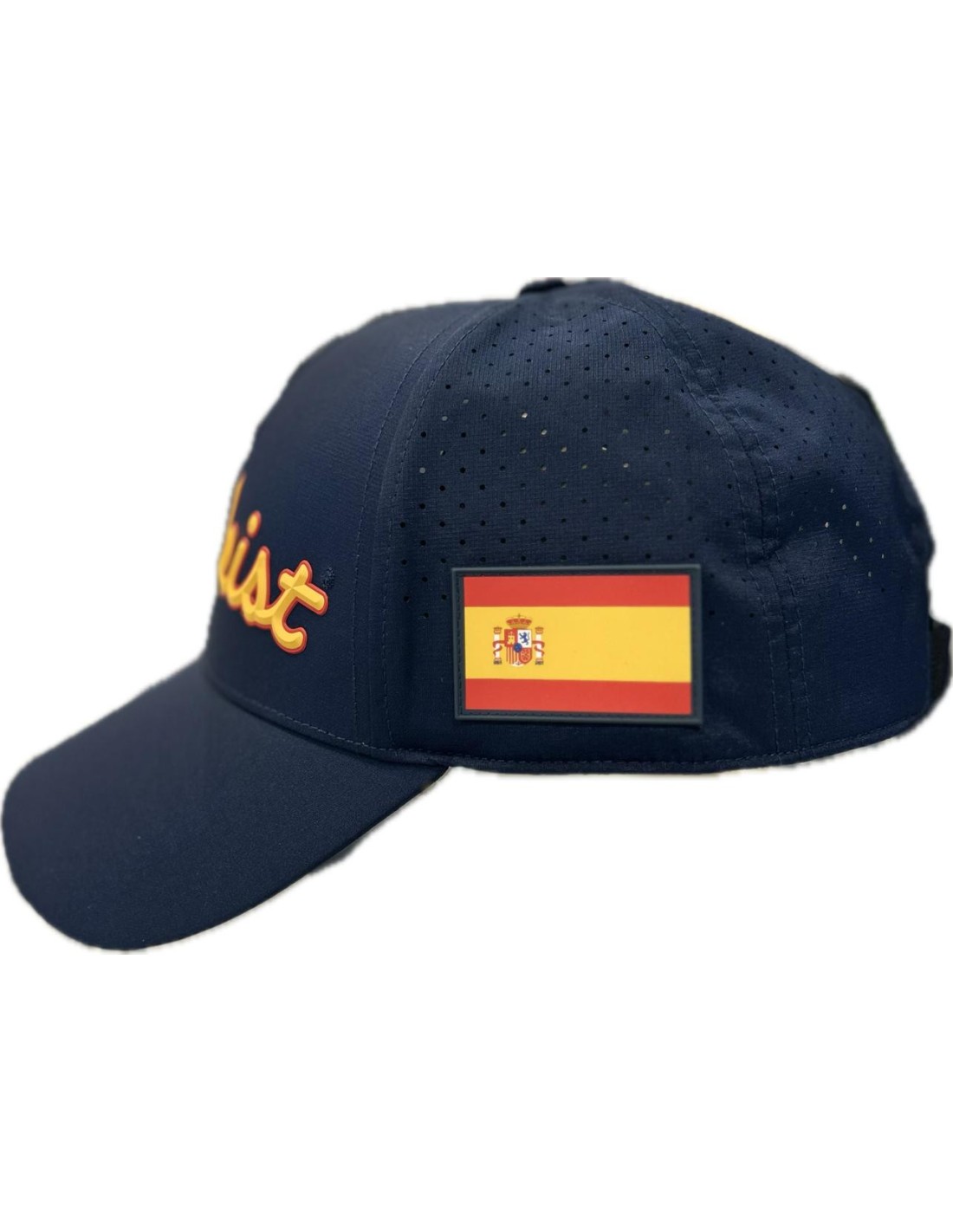 Acabado con la marca Titleist con colores amarillo y rojo, y bandera de España en lateral izquierdo.Talla única.