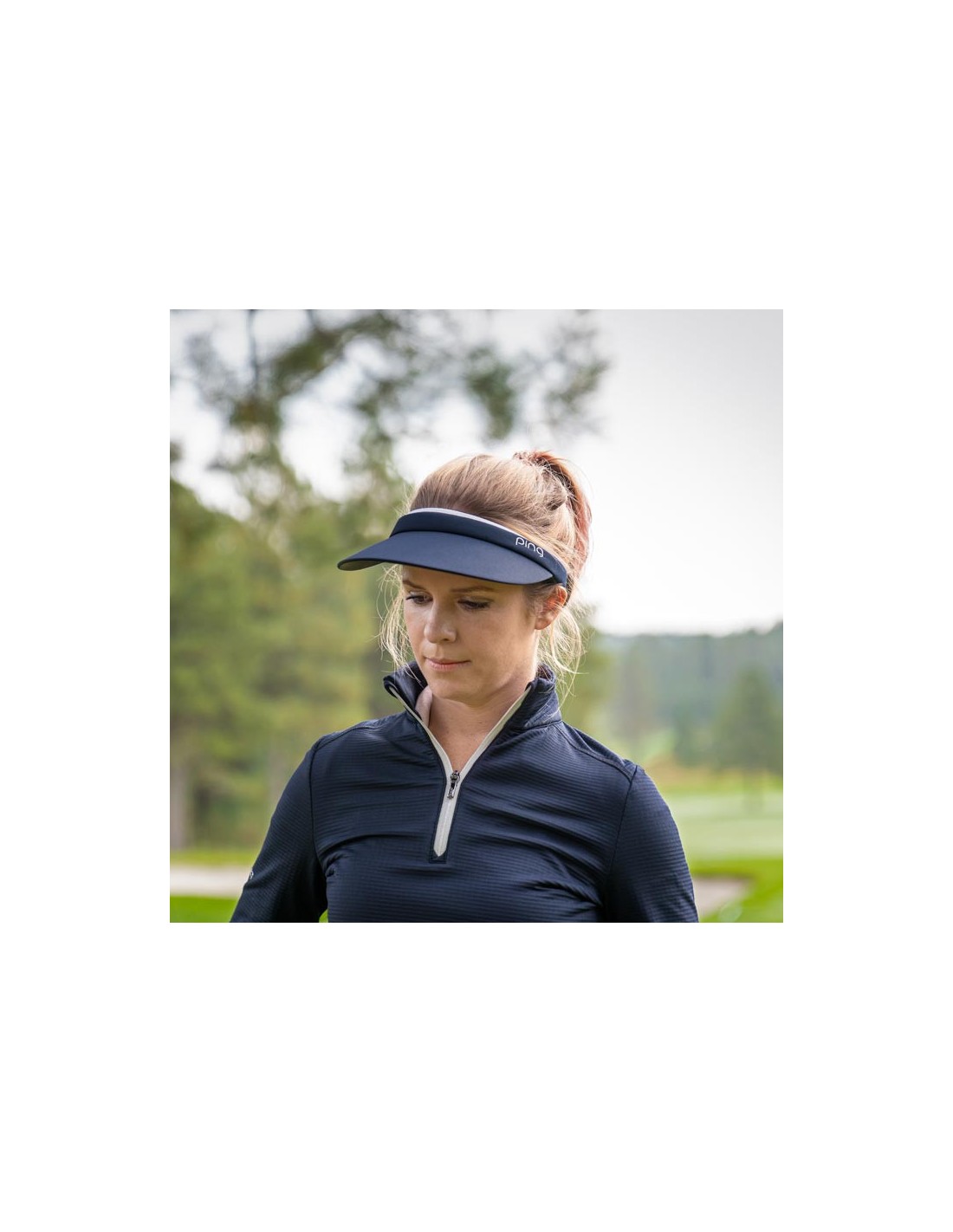 Lo más probable es que no pases calor con una visera, por el flujo de aire que proporciona, pero para asegurarte, hay una banda de cabeza SensorCool que absorbe la humedad en esta visera con clip acentuada por un logo PING bordado para damas. Esta visera de perfil medio está hecha en un ajuste y tamaño para damas.