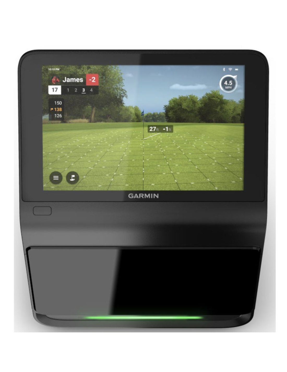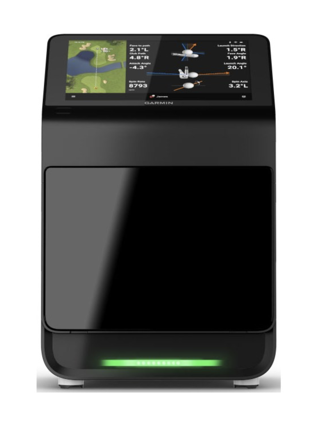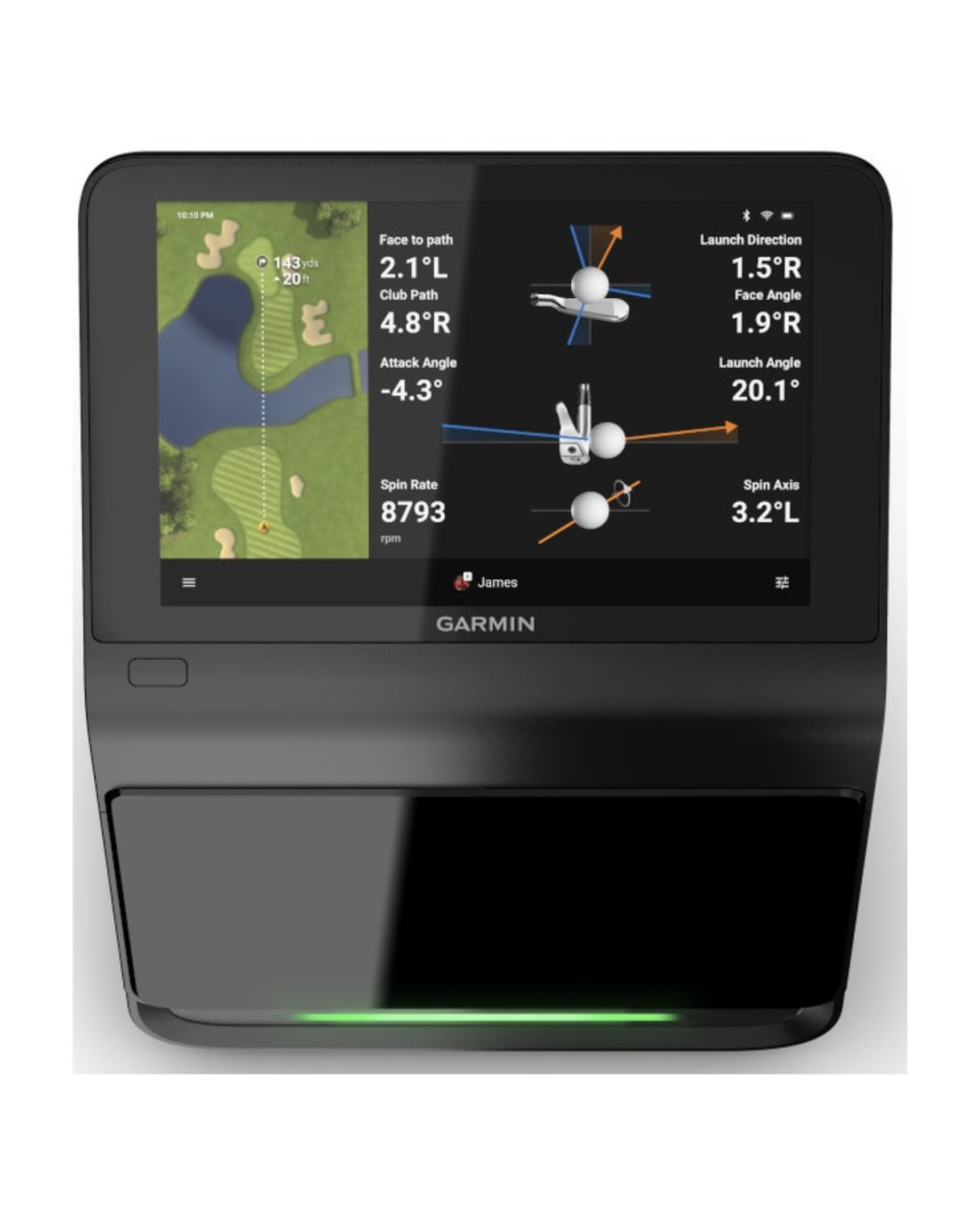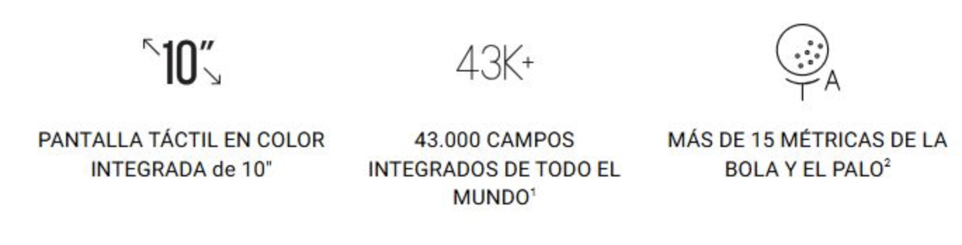 Consulta datos, revisa vídeos de los impactos o juega un recorrido en más de 43.000 campos de golf1 directamente desde la pantalla táctil a color integrada de 10?.