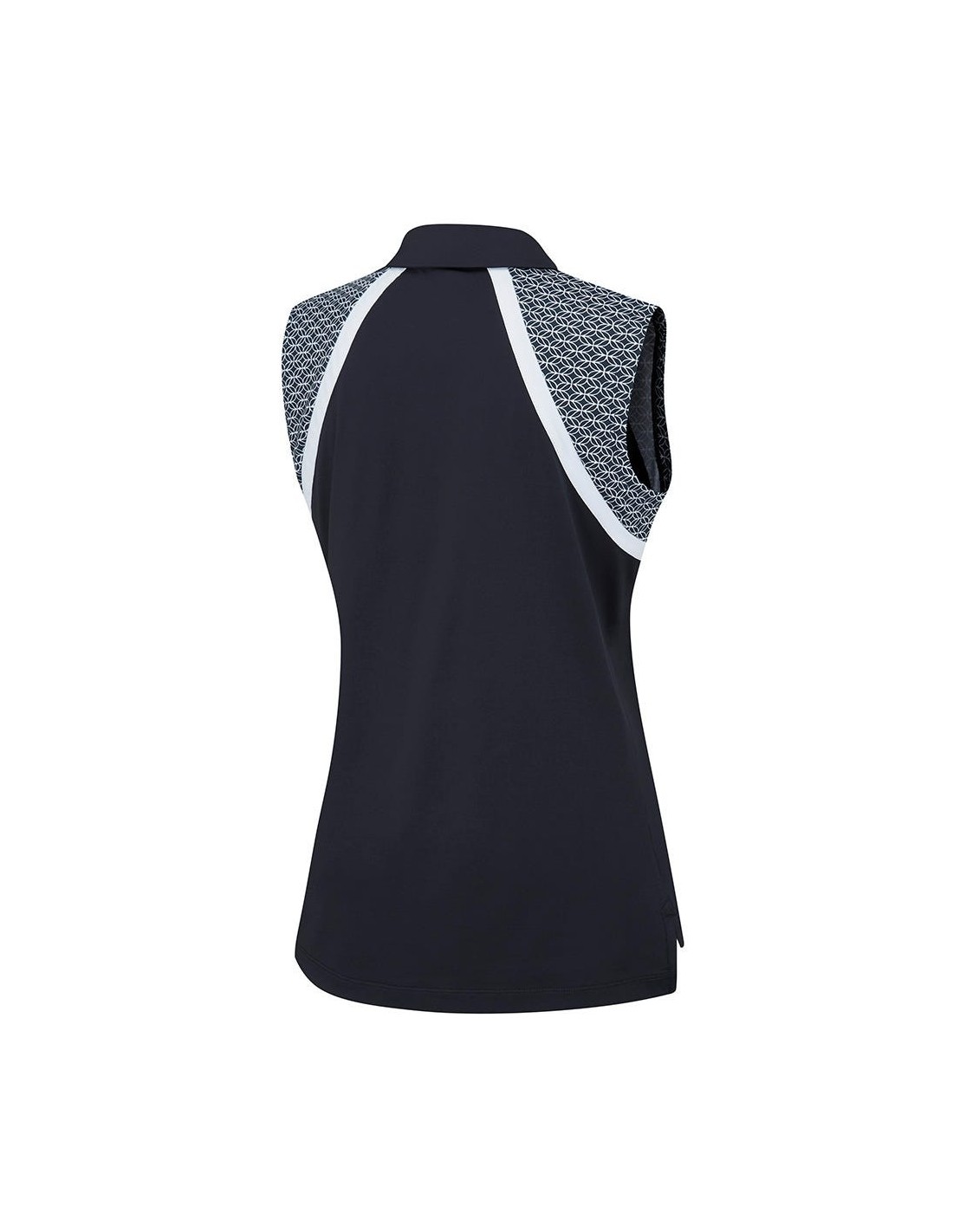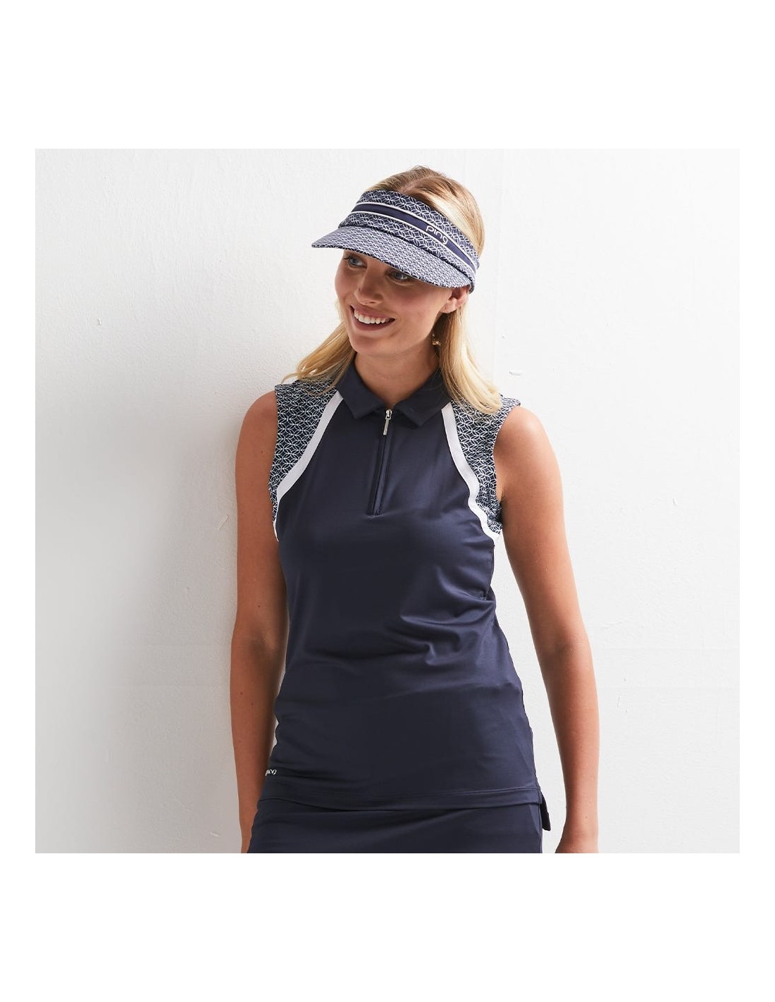 Eleva tu juego de golf con el polo Ansie para mujer en azul marino/blanco. Este polo sin mangas y con cremallera en el cuello está diseñado para brindar comodidad y evacuar la humedad en todas las condiciones. Manténgase elegante, cómodo y seguro en el campo con esta combinación perfecta de forma y función.