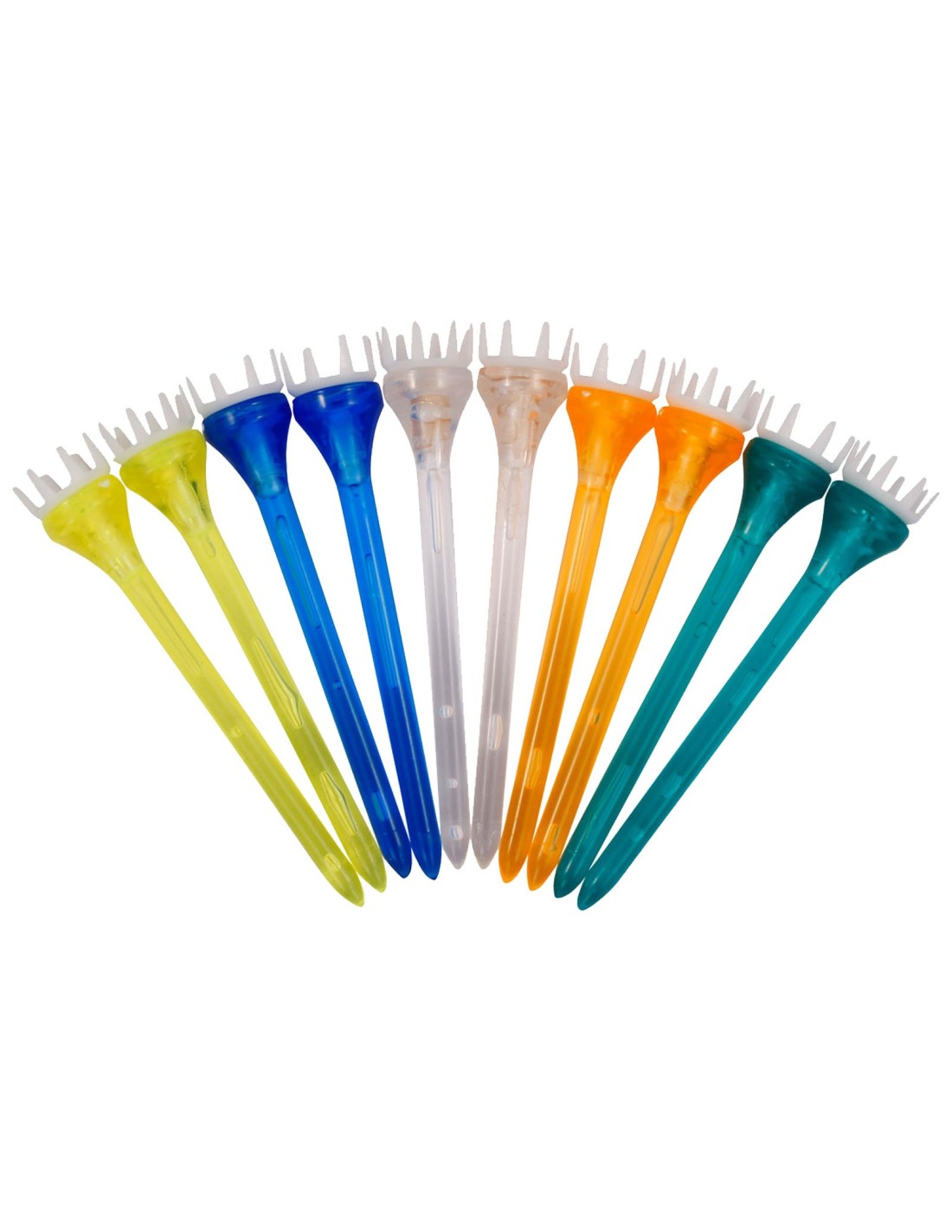 Estos tees extremadamente duraderos están hechos de un plástico fuerte y cuentan con puntas termoelásticas que se mueven a medida que disparas, brindando menos resistencia y maximizando la energía en el punto de impacto, lo que resulta en golpes más largos.